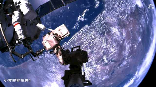 在空间站机械臂和地面科研人员的配合支持下,出舱的张陆、武飞完成了神舟二十号飞船返回舱舷窗巡检拍照、空间站空间碎片防护装置安装、温控适配器多层罩更换等任务,已安全返回问天实验舱。
